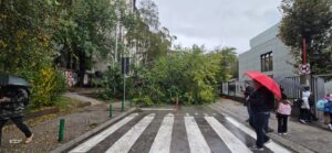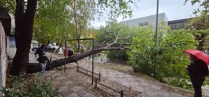 Иако немаше силен ветер, туку само врнежи од дожд, пред центарското основно училиште „Киро Глигоров“, утринава имаше паднати дрвја.
