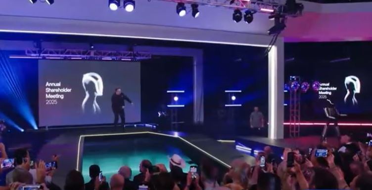 Маск се качи на бината со овации од публиката само неколку моменти откако беше одобрен неговиот пакет плати, почна да танцува, а хуманоидниот робот Оптимус почна да ги имитира неговите движења, пишува НДТВ. Оптимус, како што најави, еден ден треба да ја преземе работата за производство, испораки, па дури и за лични асистенти.