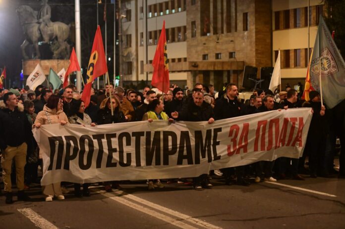 „Ако не ги зголемите нашите доаѓаме по вашите плати“, порача претседателот на ССМ Слободан Трендафилов од протестот