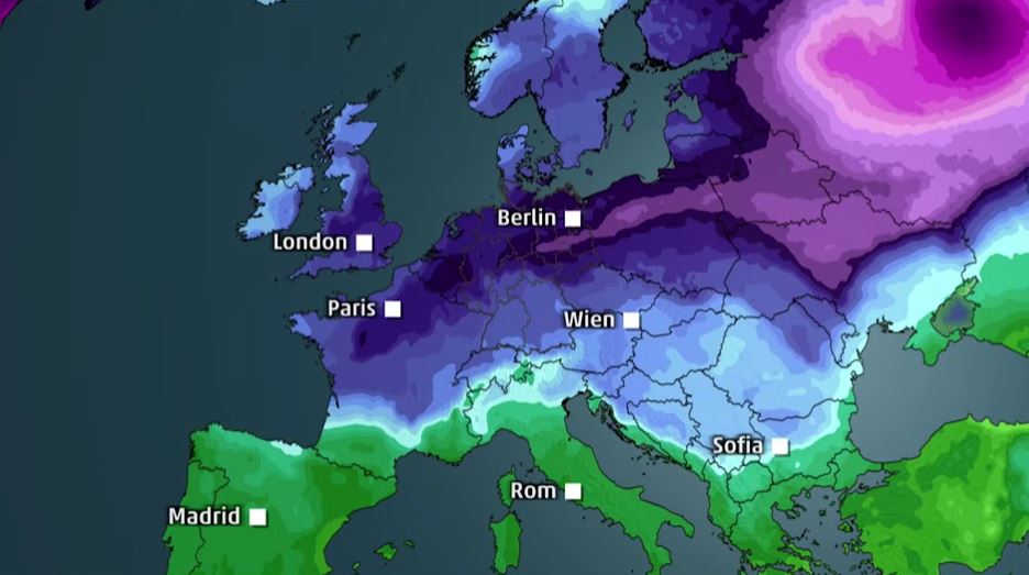 Според метеорологот Јан Шенк, сè повеќе временски модели предвидуваат дека арктичка воздушна маса ќе навлезе во Европа кон средината на следната недела, носејќи снег и студен сибирски воздух околу католичкиот Божиќ. Температурите нагло ќе паднат на 23 декември, а во наредните денови студен воздух од исток ќе се слее во од Германија, но и подалеку на југ.