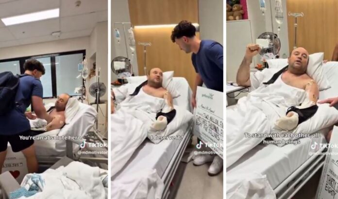 Чекот му беше врачен во болничкиот кревет од Закери Дерењовски, инфлуенсер на социјалните медиуми и ко-организатор на кампањата GoFundMe. На таткото на две деца му беше врачен чек од точно 2.533.585 австралиски долари.