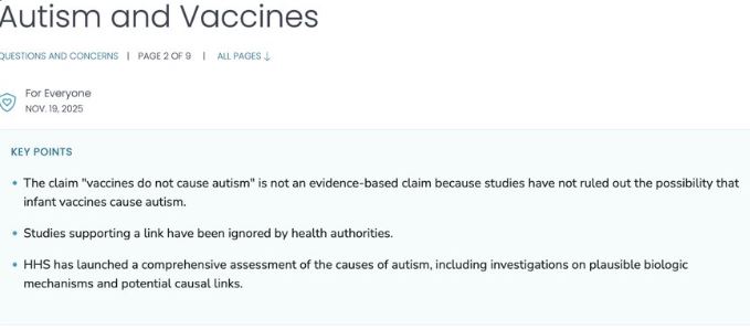 Во текстот се додава и дека здравствените власти ги „игнорирале“ студиите што ја поддржуваат врската помеѓу вакцините и аутизмот. Оваа теорија, спротивно на сегашните научни докази, долго време ја промовираа американскиот секретар за здравство Роберт Ф. Кенеди помладиот и претседателот Доналд Трамп.