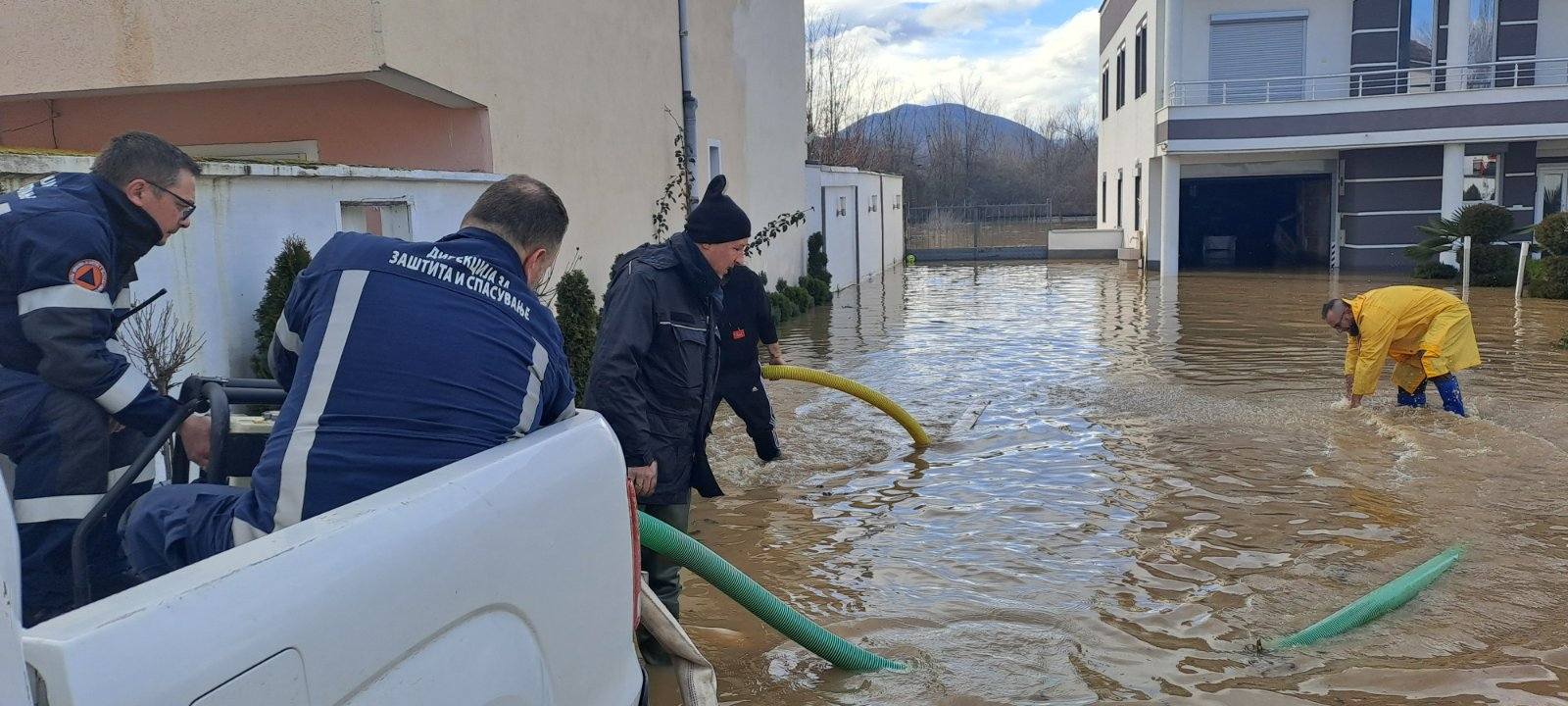 По обилните врнежи што зафатија повеќе делови од државата, Центарот за управување со кризи информира дека Дирекција за заштита и спасување (ДЗС) дејствува во координација со локалното население и со силите на терен за испумпување на поплавените површини, куќи и објекти. Интервенциите се реализираат по пријави пристигнати на единствениот повикувачки број 112, како и по директни барања од општините.