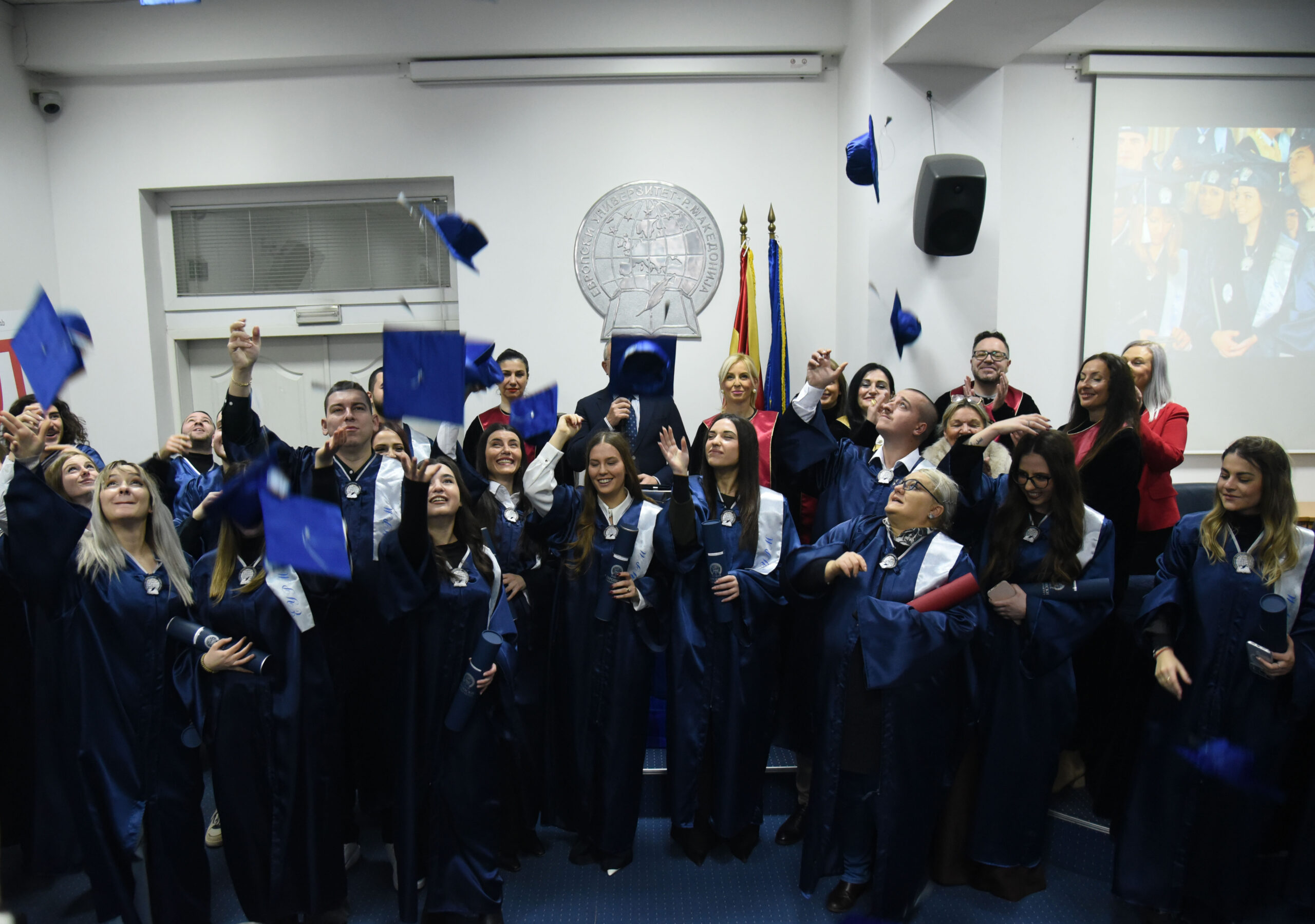 Таа упати честитки до дипломираните и магистрираните студенти и им порача да бидат достојни амбасадори во општеството на вредностите кои ги негува Европскиот универзитет.