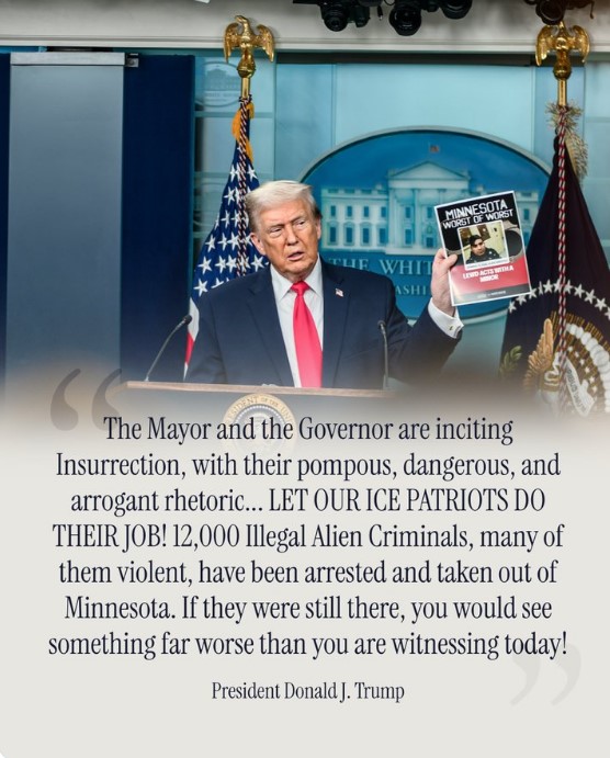 Во исто време, локалното раководство на Минесота повторно ја избира политиката пред безбедноста на Американците што ги почитуваат законите“, напишаа на „Икс“, споделувајќи ја пораката на Трамп.
