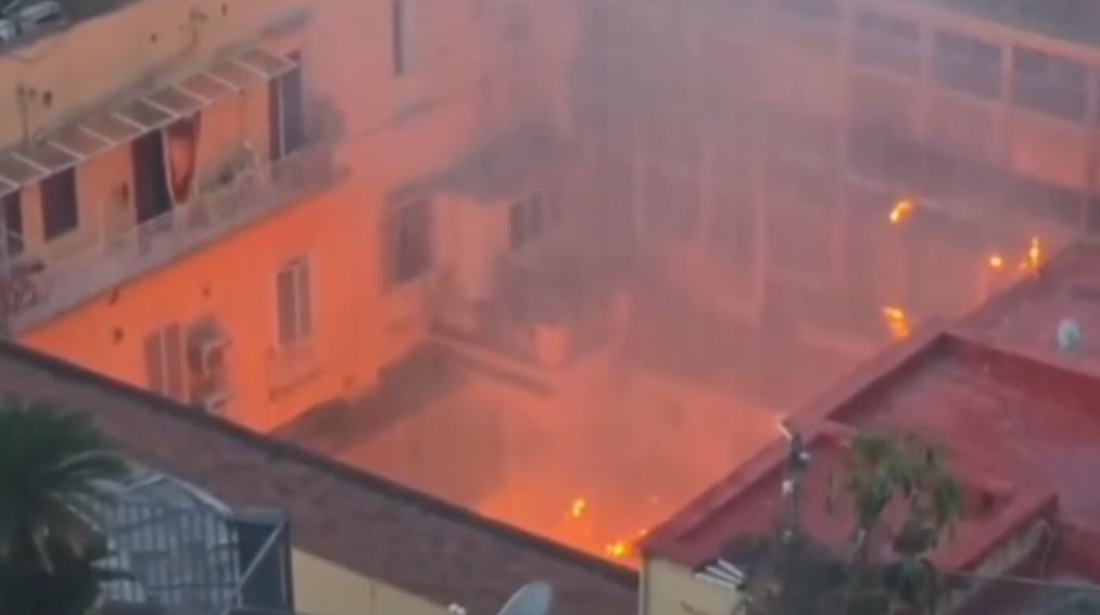 Денес во зори во елитниот кварт Кјаја во Неапол избувна катастрофален пожар, кој го зафати и Театро Саназаро. Пламените јазици брзо се проширија и зафатија голем дел од улицата.