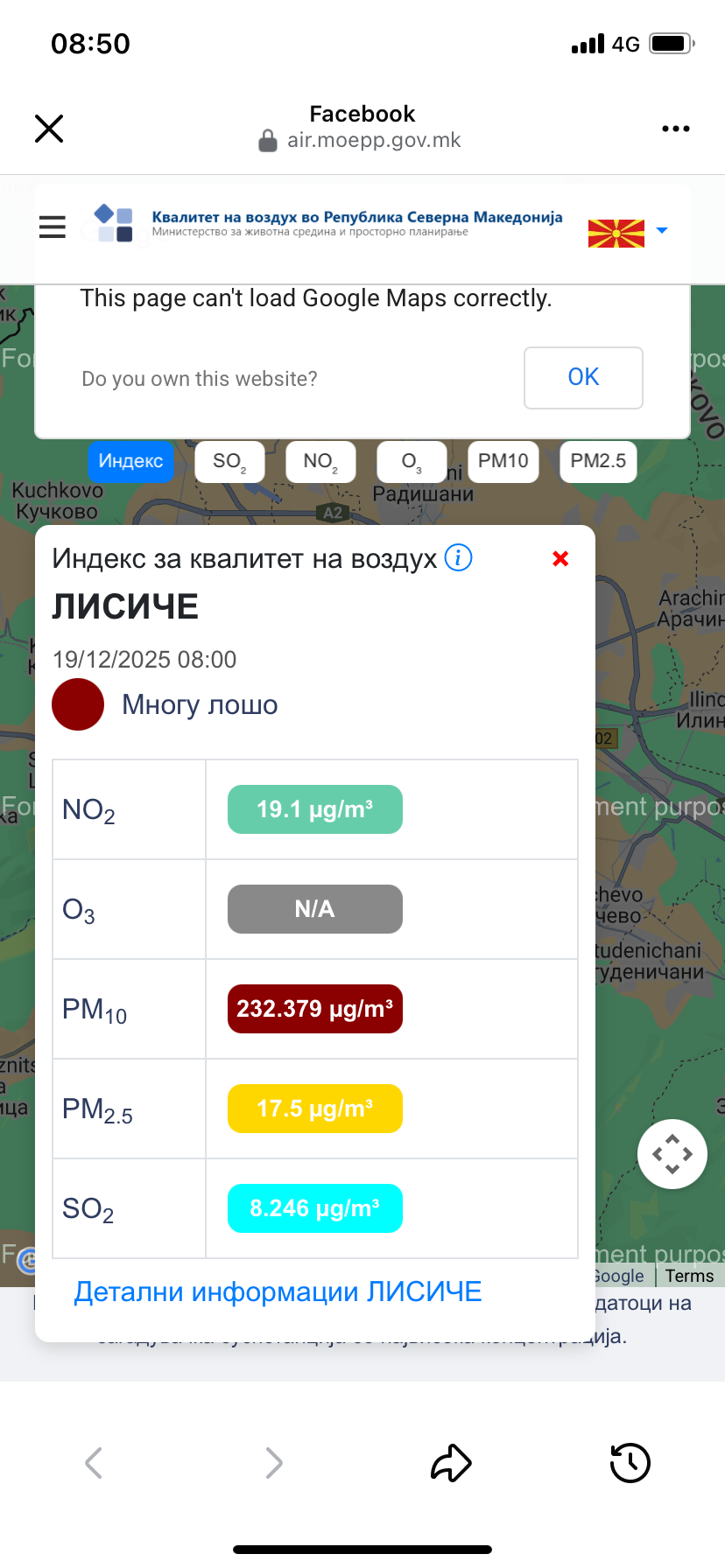 Ако тргнете од населбата Ѓорче Петров каде утринава сончевите зраци успеваат малку да продрат на површината во Лисиче “прст пред око не се гледа”. На апликацијата за мерење на квалитетот на воздухот во оваа скопска населба стои дека загадувањето е екстремно лошо.