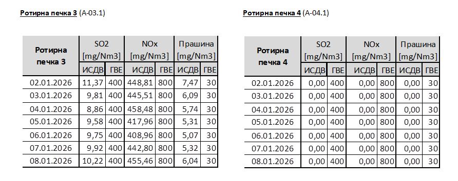 Паралелното мерење на амбиенталниот воздух (PM10 честички) во кругот на ТИТАН УСЈЕ не покажува меѓузависност со состојбите со амбиенталниот воздух измерени на други мерни станици, надвор од цементарницата.