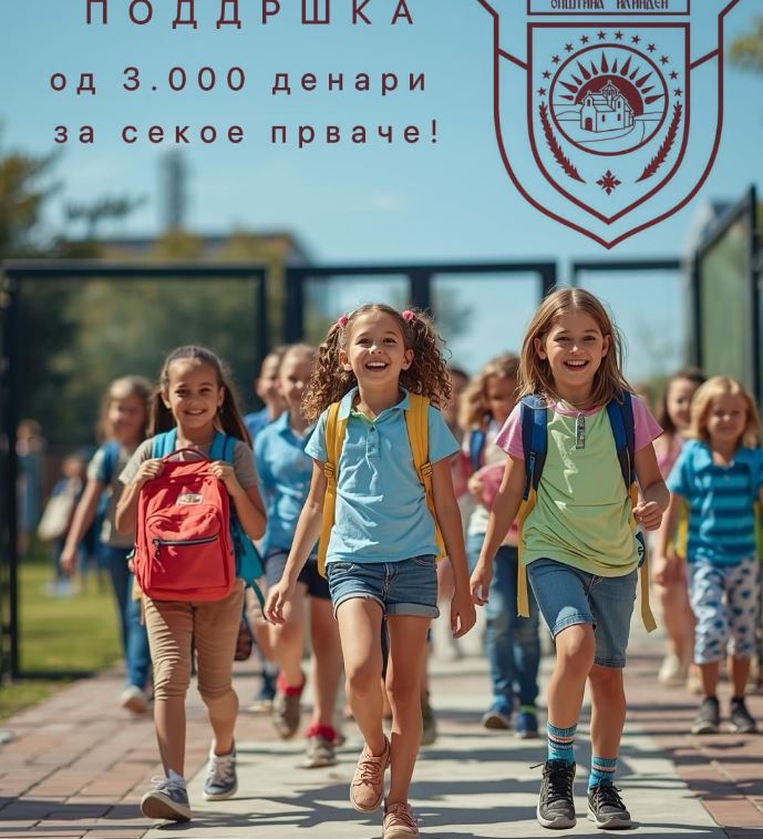 Почнувајќи од следната учебна година, покрај досегашната поддршка со ранчиња и училиштен прибор, Општината, како новина, воведува доделување субвенција во износ од 3.000 денари за секое прваче.