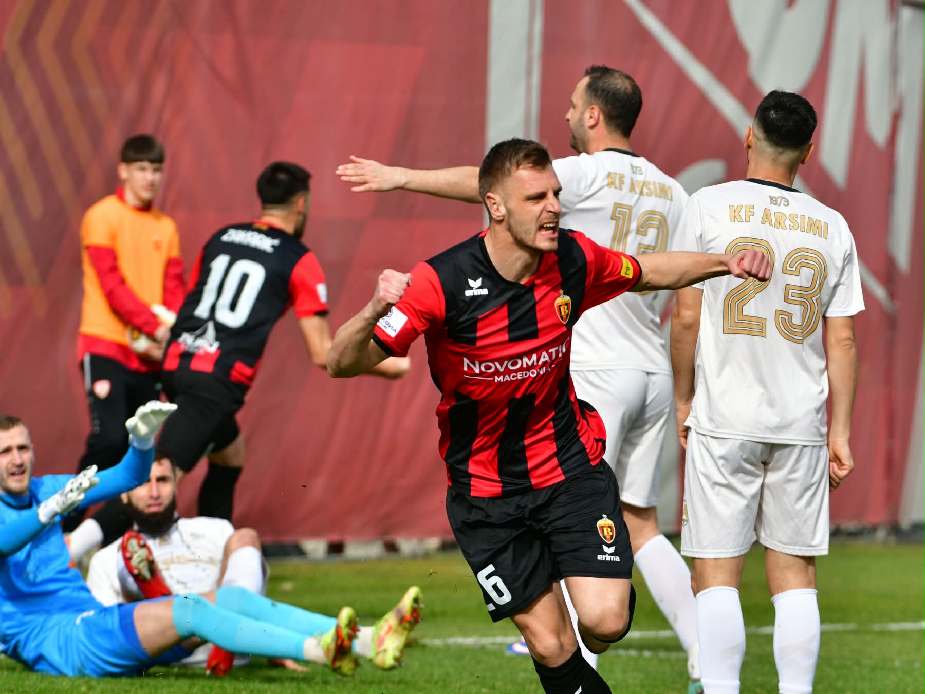Најтрофејниот македонски клуб дојде до убедливо водство со погодоците на Цветковиќ, Николов, Велковски, Босанчиќ и Омерагиќ, а почесниот погодок за гостинот беше дело на Цуцули кој успешно го изведе ударот од белата точка.
