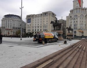 Акцијата за чисто Скопје и понатаму продолжува. И вчера на плоштадо „Македонија“ можеа да се забележат работници кои работеа на негово чистење.
