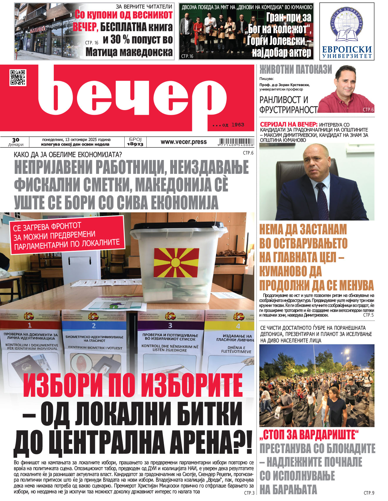 Број 18.923 Од страна на Вечер - 12/10/2025 16:50 9 FacebookTwitterPinterestWhatsAppLinkedinEmailTelegramViber ПРЕТХОДНИ 5Број 18.92209/10/2025 18:17Број 18.92108/10/2025 17:42Број 18.92007/10/2025 17:51Број 18.91906/10/2025 16:44Број 18.91805/10/2025 16:34