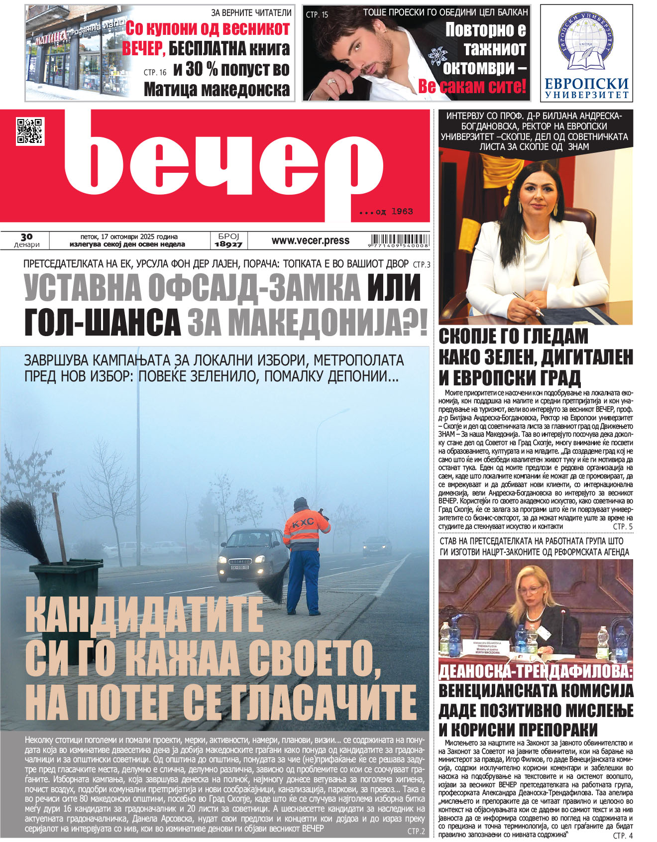Број 18.927 Од страна на Вечер - 16/10/2025 17:06 18 FacebookTwitterPinterestWhatsAppLinkedinEmailTelegramViber ПРЕТХОДНИ 5Број 18.92615/10/2025 17:25Број 18.92514/10/2025 17:37Број 18.92413/10/2025 16:56Број 18.92312/10/2025 16:50Број 18.92209/10/2025 18:17