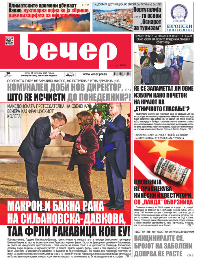 Број 18.938 Од страна на Вечер - 30/10/2025 16:52 43 FacebookTwitterPinterestWhatsAppLinkedinEmailTelegramViber ПРЕТХОДНИ 5Број 18.93729/10/2025 16:59Број 18.93628/10/2025 17:42Број 18.93527/10/2025 17:03Број 18.93426/10/2025 16:32Број 18.93324/10/2025 18:24