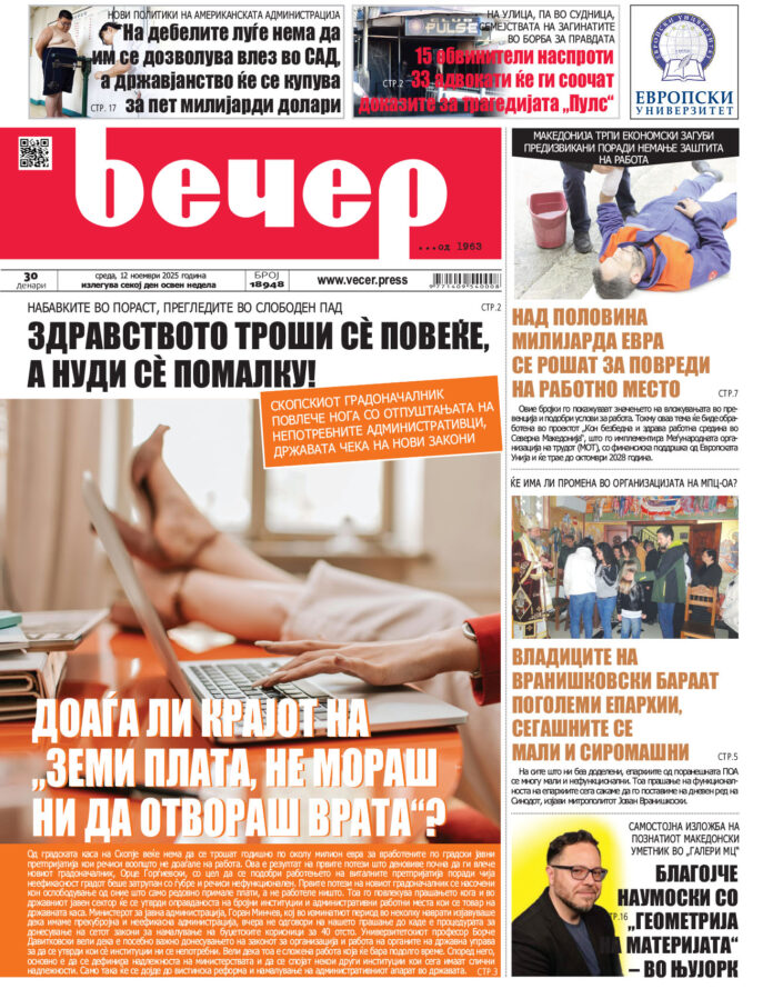Број 18.948 Од страна на Вечер - 11/11/2025 16:26 19 FacebookTwitterPinterestWhatsAppLinkedinEmailTelegramViber ПРЕТХОДНИ 5Број 18.94710/11/2025 17:04Број 18.94609/11/2025 18:21Број 18.94507/11/2025 16:54Број 18.94406/11/2025 16:26Број 18.94305/11/2025 16:42
