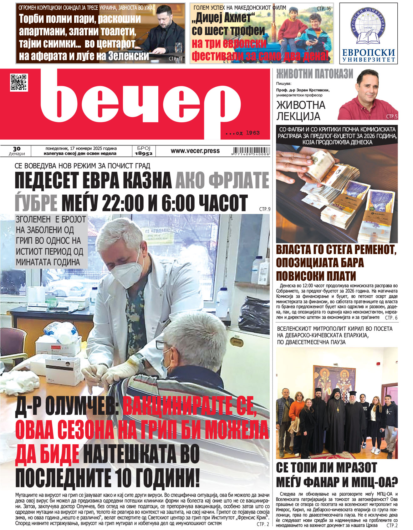Број 18.952 Од страна на Вечер - 16/11/2025 16:27 17 FacebookTwitterPinterestWhatsAppLinkedinEmailTelegramViber ПРЕТХОДНИ 5Број 18.95114/11/2025 17:02Број 18.95013/11/2025 17:31Број 18.94912/11/2025 16:51Број 18.94811/11/2025 16:26Број 18.94710/11/2025 17:04