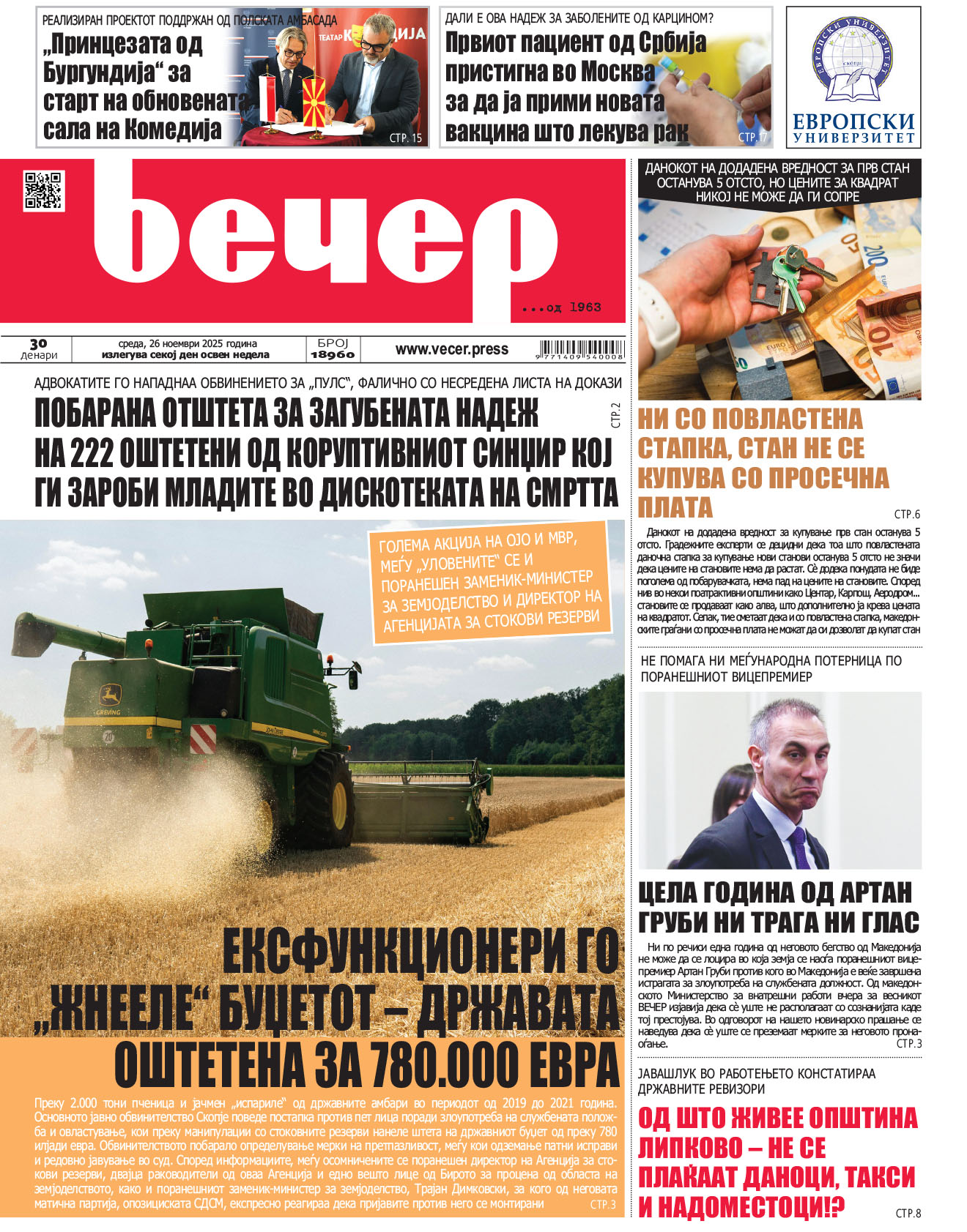 Број 18.960 Од страна на Вечер - 25/11/2025 16:47 15 FacebookTwitterPinterestWhatsAppLinkedinEmailTelegramViber ПРЕТХОДНИ 5Број 18.95924/11/2025 16:26Број 18.95823/11/2025 17:05Број 18.95721/11/2025 16:50Број 18.95620/11/2025 16:36Број 18.95519/11/2025 16:45