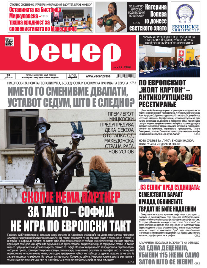 Број 18.968 Од страна на Вечер - 04/12/2025 16:58 0 FacebookTwitterPinterestWhatsAppLinkedinEmailTelegramViber ПРЕТХОДНИ 5Број 18.96703/12/2025 16:46Број 18.96602/12/2025 16:44Број 18.96501/12/2025 16:27Број 18.96430/11/2025 16:54Број 18.96328/11/2025 16:31