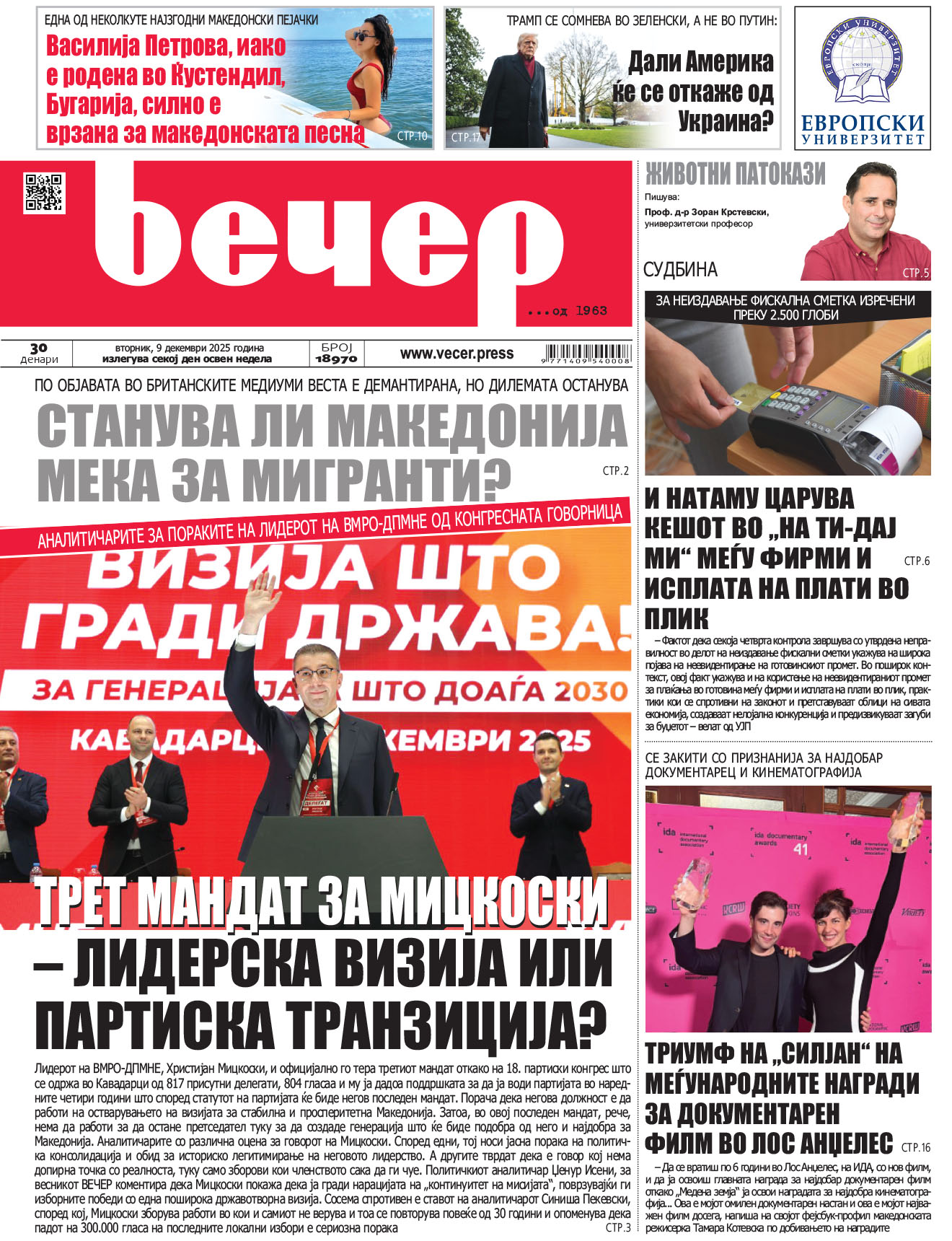 Број 18.970 Од страна на Вечер - 08/12/2025 16:14 0 FacebookTwitterPinterestWhatsAppLinkedinEmailTelegramViber ПРЕТХОДНИ 5Број 18.96905/12/2025 18:01Број 18.96804/12/2025 16:58Број 18.96703/12/2025 16:46Број 18.96602/12/2025 16:44Број 18.96501/12/2025 16:27