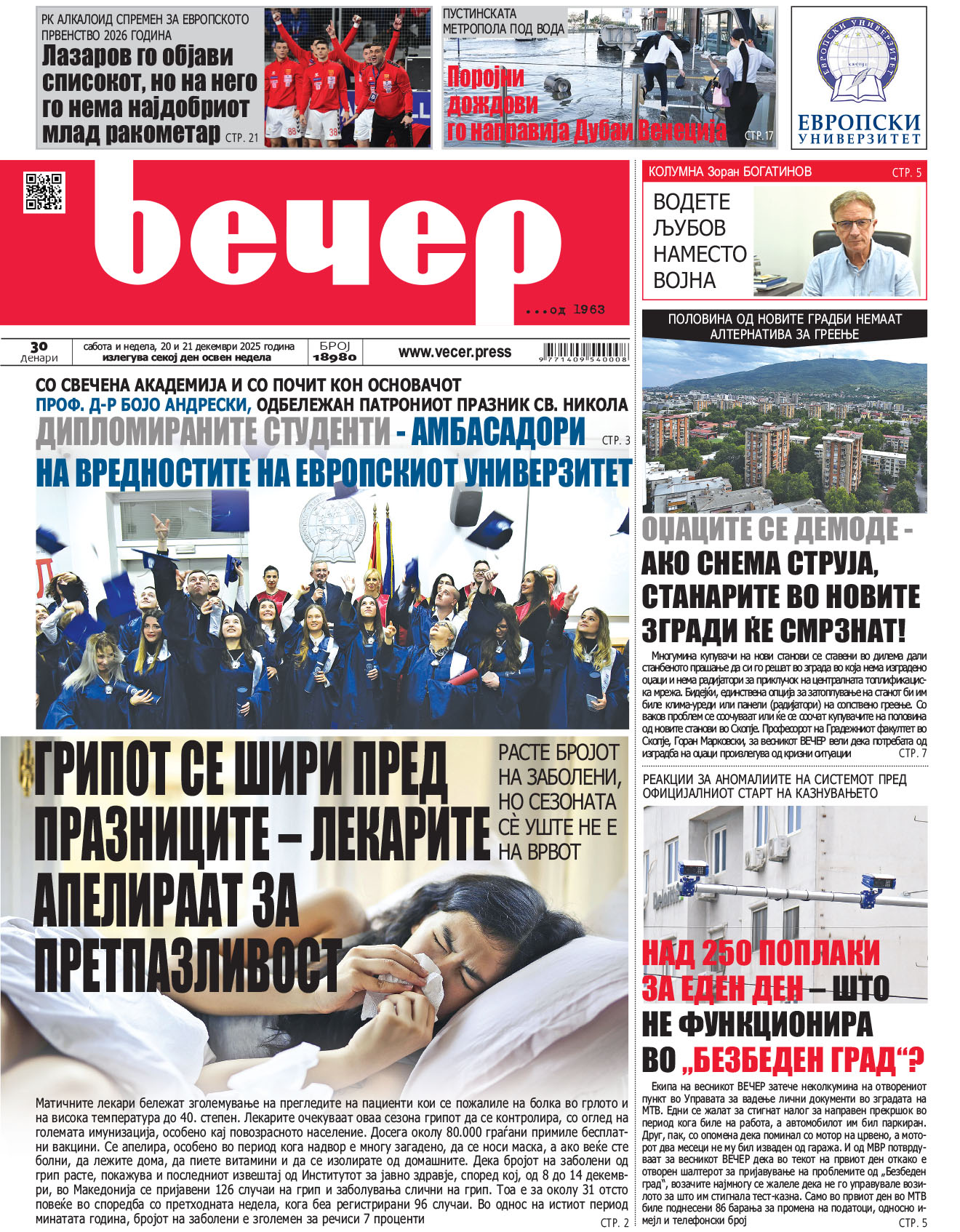 Број 18.980 Од страна на Вечер - 19/12/2025 18:15 32 FacebookTwitterPinterestWhatsAppLinkedinEmailTelegramViber ПРЕТХОДНИ 5Број 18.97918/12/2025 17:15Број 18.97817/12/2025 17:06Број 18.97716/12/2025 17:10Број 18.97615/12/2025 16:54Број 18.97514/12/2025 16:38