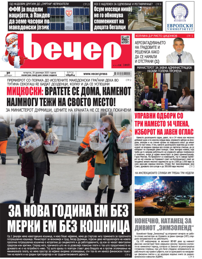 Број 18.984 Од страна на Вечер - 24/12/2025 17:24 8 FacebookTwitterPinterestWhatsAppLinkedinEmailTelegramViber ПРЕТХОДНИ 5Број 18.98323/12/2025 16:22Број 18.98222/12/2025 17:45Број 18.98121/12/2025 15:53Број 18.98019/12/2025 18:15Број 18.97918/12/2025 17:15