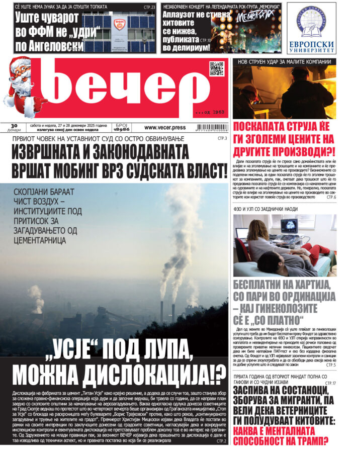 Број 18.986 Од страна на Вечер - 26/12/2025 17:05 33 FacebookTwitterPinterestWhatsAppLinkedinEmailTelegramViber ПРЕТХОДНИ 5Број 18.98525/12/2025 16:35Број 18.98424/12/2025 17:24Број 18.98323/12/2025 16:22Број 18.98222/12/2025 17:45Број 18.98121/12/2025 15:53