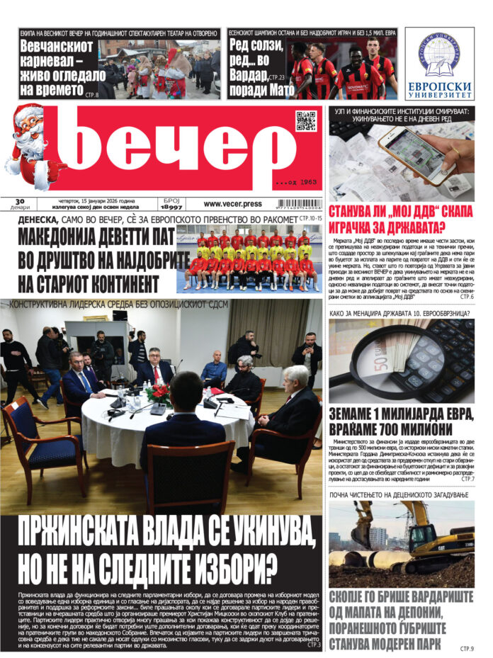 Број 18.997 Од страна на Вечер - 14/01/2026 18:46 5 FacebookTwitterPinterestWhatsAppLinkedinEmailTelegramViber ПРЕТХОДНИ 5Број 18.99613/01/2026 16:34Број 18.99512/01/2026 16:42Број 18.99411/01/2026 17:28Број 18.99309/01/2026 17:44Број 18.99208/01/2026 17:13