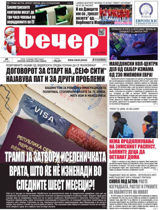 Број 18.998 Од страна на Вечер - 15/01/2026 16:39 9 FacebookTwitterPinterestWhatsAppLinkedinEmailTelegramViber ПРЕТХОДНИ 5Број 18.99714/01/2026 18:46Број 18.99613/01/2026 16:34Број 18.99512/01/2026 16:42Број 18.99411/01/2026 17:28Број 18.99309/01/2026 17:44