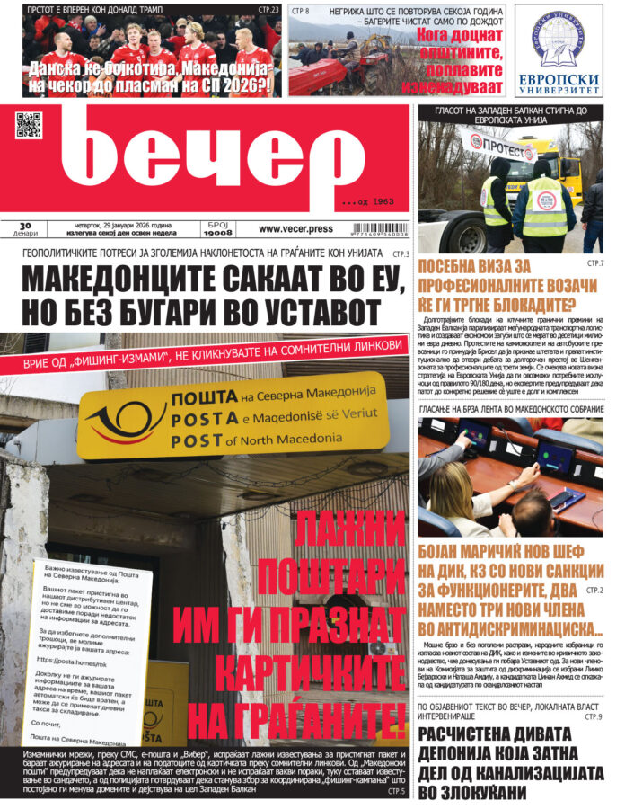 Број 19.008 Од страна на Вечер - 28/01/2026 16:52 8 FacebookTwitterPinterestWhatsAppLinkedinEmailTelegramViber ПРЕТХОДНИ 5Број 19.00727/01/2026 16:16Број 19.00626/01/2026 16:45Број 19.00525/01/2026 16:32Број 19.00423/01/2026 17:40Број 19.00322/01/2026 17:01
