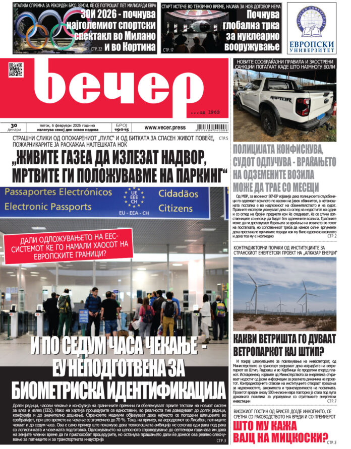 Број 19.015 Од страна на Вечер - 05/02/2026 16:37 9 FacebookTwitterPinterestWhatsAppLinkedinEmailTelegramViber ПРЕТХОДНИ 5Број 19.01404/02/2026 16:30Број 19.01303/02/2026 16:02Број 19.01202/02/2026 17:27Број 19.01101/02/2026 16:27Број 19.01030/01/2026 17:00