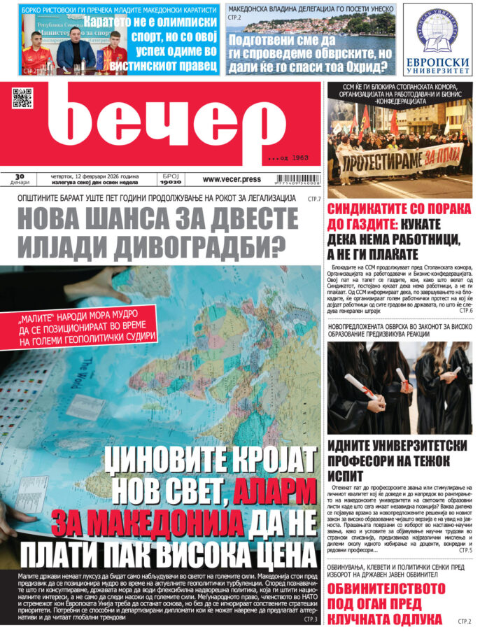 Број 19.020 Од страна на Вечер - 11/02/2026 17:07 10 FacebookTwitterPinterestWhatsAppLinkedinEmailTelegramViber ПРЕТХОДНИ 5Број 19.01910/02/2026 17:20Број 19.01809/02/2026 16:44Број 19.01708/02/2026 18:07Број 19.01606/02/2026 16:49Број 19.01505/02/2026 16:37