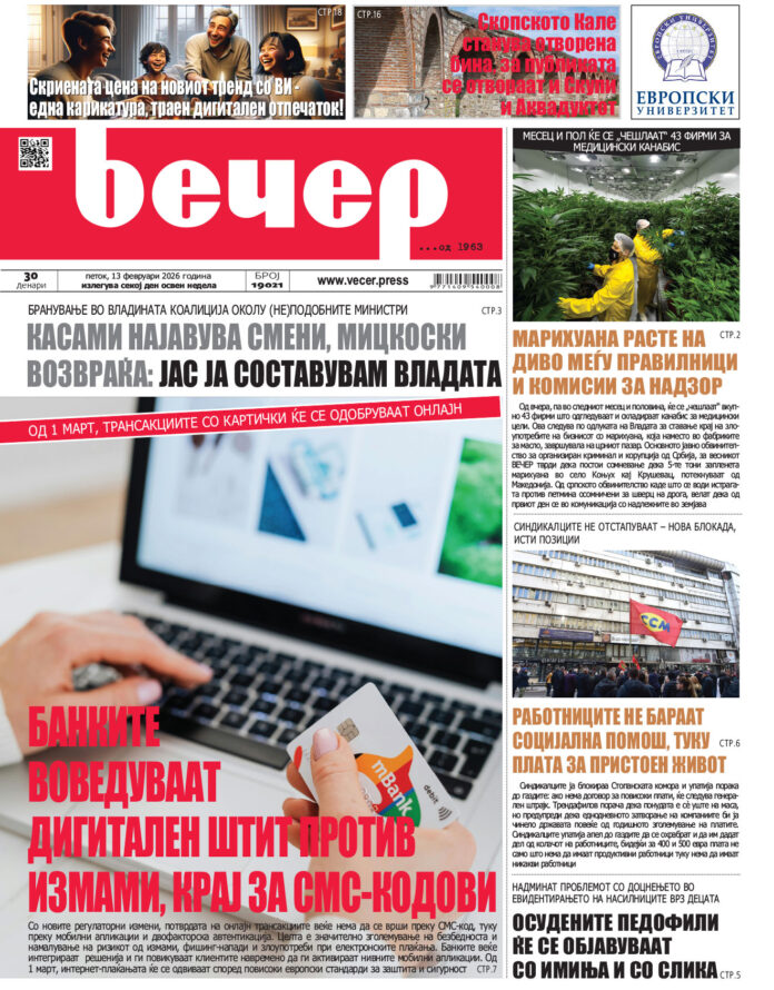 Број 19.021 Од страна на Вечер - 12/02/2026 16:46 8 FacebookTwitterPinterestWhatsAppLinkedinEmailTelegramViber ПРЕТХОДНИ 5Број 19.02011/02/2026 17:07Број 19.01910/02/2026 17:20Број 19.01809/02/2026 16:44Број 19.01708/02/2026 18:07Број 19.01606/02/2026 16:49