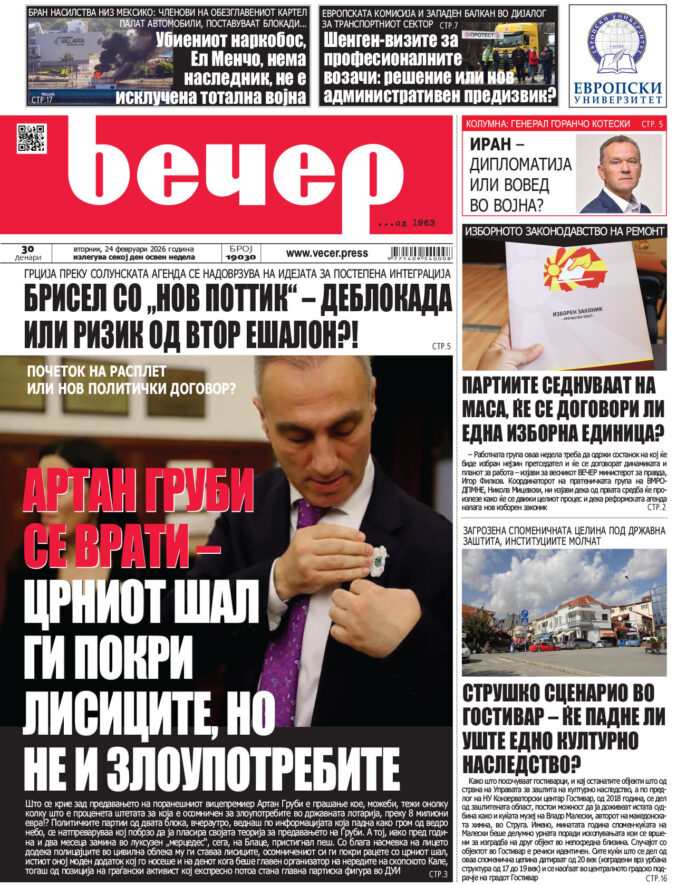 Број 19.030 Од страна на Вечер - 23/02/2026 16:55 12 FacebookTwitterPinterestWhatsAppLinkedinEmailTelegramViber ПРЕТХОДНИ 5Број 19.02922/02/2026 16:31Број 19.02820/02/2026 16:51Број 19.02719/02/2026 16:49Број 19.02618/02/2026 17:06Број 19.02517/02/2026 17:10