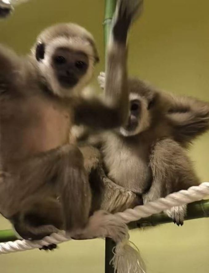 Од Зоолошката информираат дека со голема пожртвуваност на вработените, особено на колешката Зера, и по долги непроспиени ноќи, успеале да ги спојат гибоните Делфина и Мики, кои, како што велат, учат да живеат заедно и самостојно, без човечка помош.