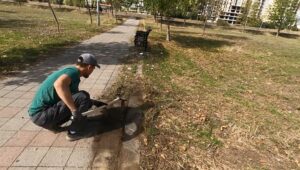 Неговите магични раце ги средуваат пешачките патеки обраснати со трева, а на зелените грмушести растенија им даваат преубави форми. Со неговите потези, патеките стануваат пошироки, а клупите над кои има зеленило –функционални.