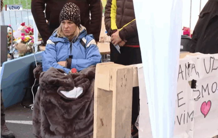 Дијана Хрка им се обрати на новинарите пред нејзиниот шатор во близина на српскиот парламент, откако прими интравенска инјекција во болница. Таа оцени дека институциите сè уште не си ја вршат работата и изјави дека не треба да разговара со српскиот претседател Александар Вучиќ.