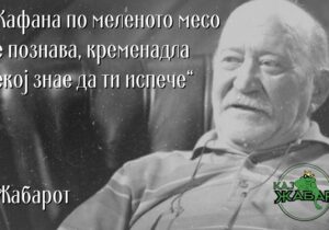 – Еден дипломат, кога бил во Охрид, го прашале што ќе порача за јадење: „Плескавица а ла Жабар“, одговорил. Познатата француска новинарка со арапско потекло, Домени Беруш (поради убавината, во кафеаната ја нарекувале Црната Венера), јадела огромно количество лути пиперки. „И ние, Македонците, јадеме луто“, велеше со чудење Жабарот, „ама ова беше нешто невидено“. Што да се прави? Луѓе, навики, обичаи. И тоа беше дел од атмосферата кај Жабарот – потенцира Коцевски.