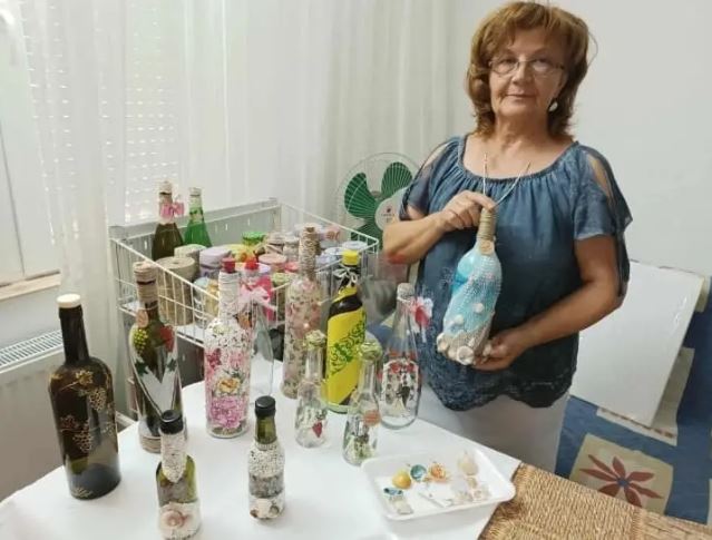 Решила, исто така, да им даде втора шанса на материјалите, па започнала да прави декупаж на стаклени тегли и особено на шишиња, со оглед на тоа што Тиквешијата е познат и најголем лозаровинарски регион во државата и надвор од неа. Така, нацртаните стаклени предмети добивале нова употребна вредност.