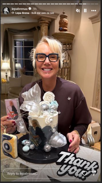 Пејачката токму вчера го прослави 65. роденден. Една е од ретките која не ги крие годините, со нив се гордее. – Не се срамам што полека, но сигурно стареам. Па, тоа е нормален природен процес. Сите се раѓаме, живееме, се радуваме и, најпосле, умираме. Поодамна сум помирена со тоа. Среќна сум што живеам среќно гледајќи ги синовите, кои израснаа во убави, здрави и воспитани момчиња, раскажа Лепа Брена додека наздравуваше во својата луксузна куќа во Белград со семејството и со сопругот, бившиот тенисер, Бобан Живојиновиќ. Иако сите очекуваа дека пејачката ќе слави на некоја скапоцена јахта, тоа не го направи. Остана скромна, па славењето се случи дома, во Белград, покрај големата роденденска торта, која домашните ја украсија со нејзиниот лик и дискотопки, кои се симбол на нејзината блескава кариера. Лепа Брена самата си посака се што може да се посака, а најискрено да има многу здравје. Познато е дека пејачката честопати е со здравствените проблеми, поради што најчесто не практикува пред и по концерти да другарува со многу народ, туку си заминува на спиење. По охридскиот настап направи исклучок, па остана да се забавува на Свети Наум, при што за своето друштво испеа куп македонски народни песни кои многу ги сака!Нејзините обожавателите ширум светот беа воодушевени од нејзиниот природен изглед – без шминка, со широка насмевка и со лицето без брчки. Лепа Брена повторно нагласи дека вистинската убавина доаѓа од внатрешниот мир. Во описот над сликата со тортата таа на сите им се заблагодари, најмногу на своите обожаватели со зборовите од нејзиниот голем хит „Боли ме уво за све“… – Благодарам за најубавите роденденски желби! Вашите пораки, честитки и убави зборови ми го разубавија денот и ми го направија посебно драг. Среќна сум што сте постојано дел од мојот живот и што овој роденден ми го направивте незаборавен!