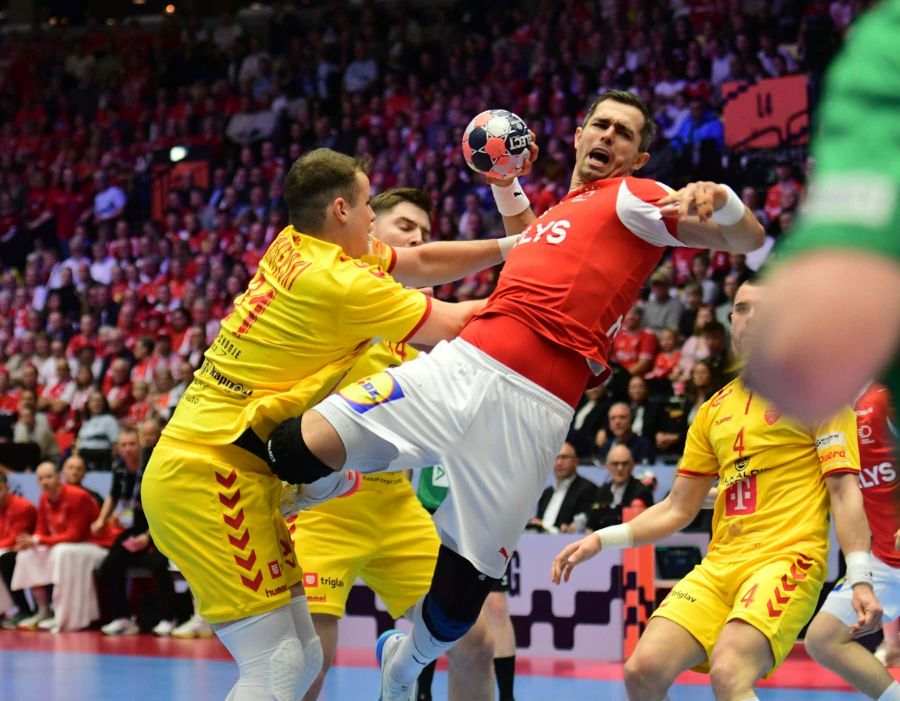 Македонската ракометна репрезентација со пораз го почна Европското првенство во Данска, Шведска и Норвешка. Светскиот и олимписки првак, Данска, славеше во преполната „Јуске Банк Боксен“ во Хернинг со 36:24 (17:12).