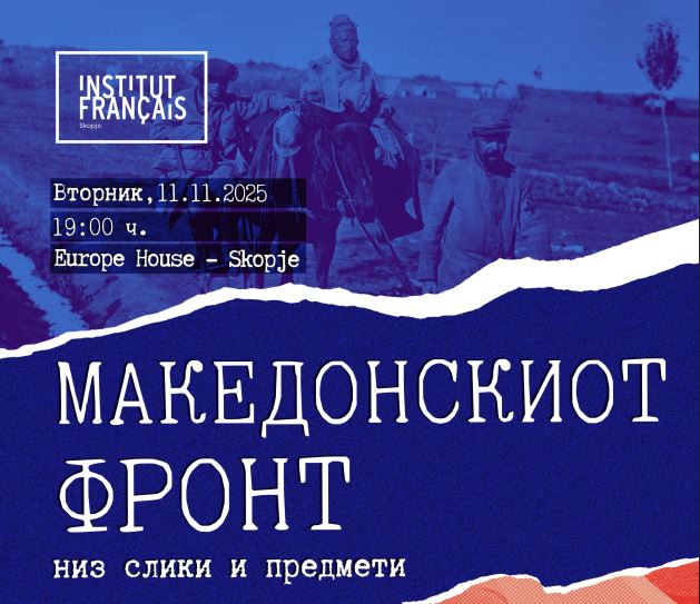 Францускиот институт во Скопје организира предавање и изложба „Македонскиот фронт низ слики и предмети “, кое ќе се одржи во вторник, 11 ноември 2025 година, од 19:00 часот, во Europe House, Скопје.