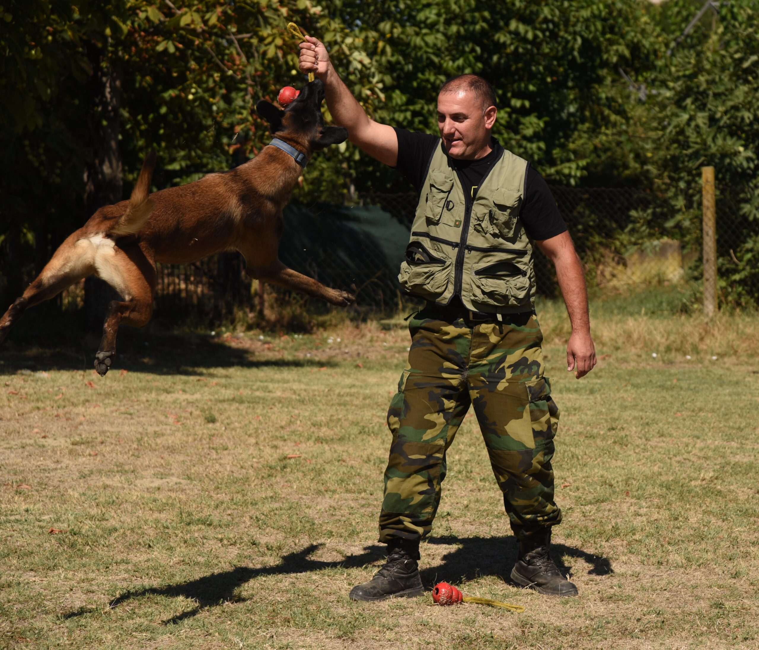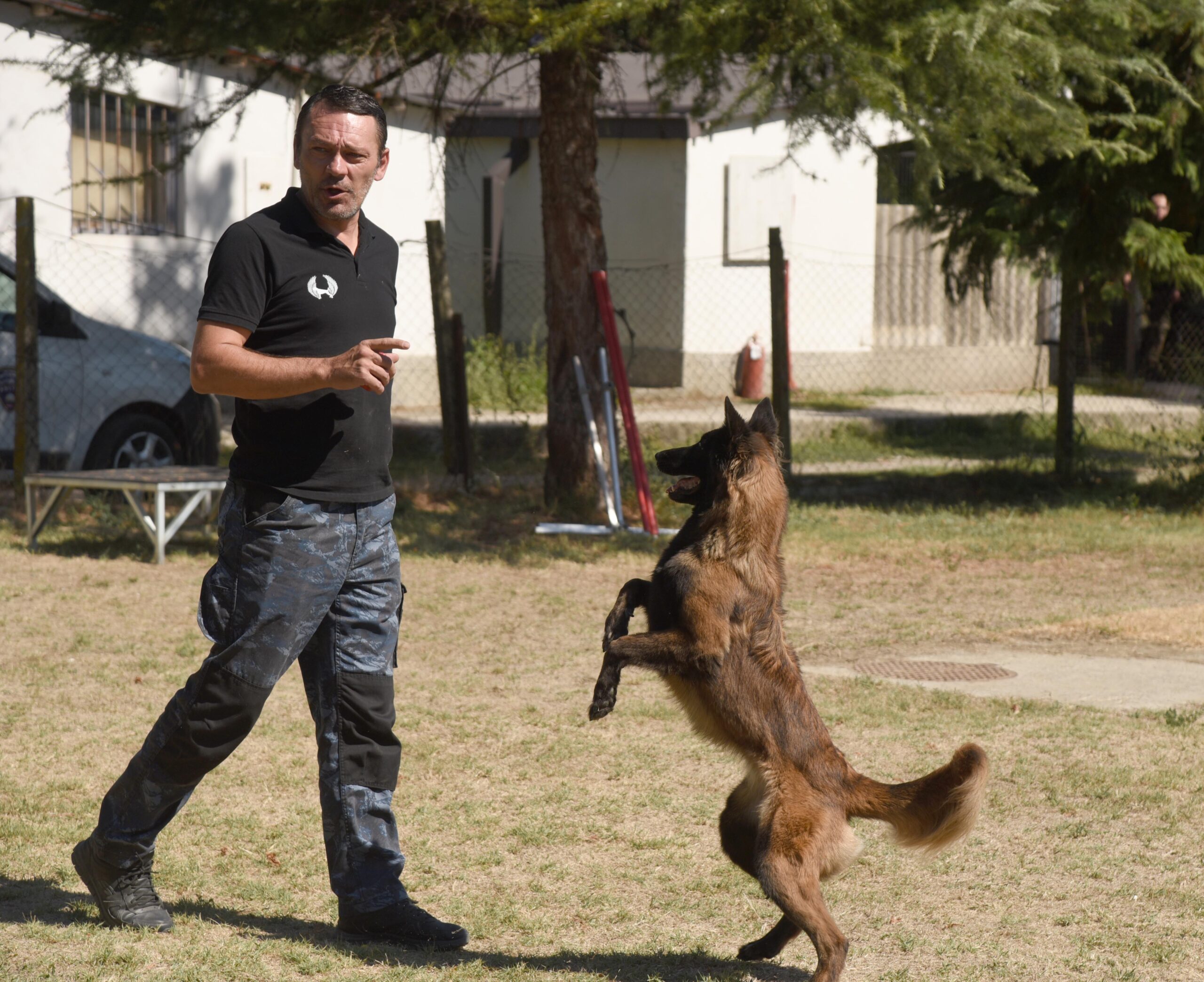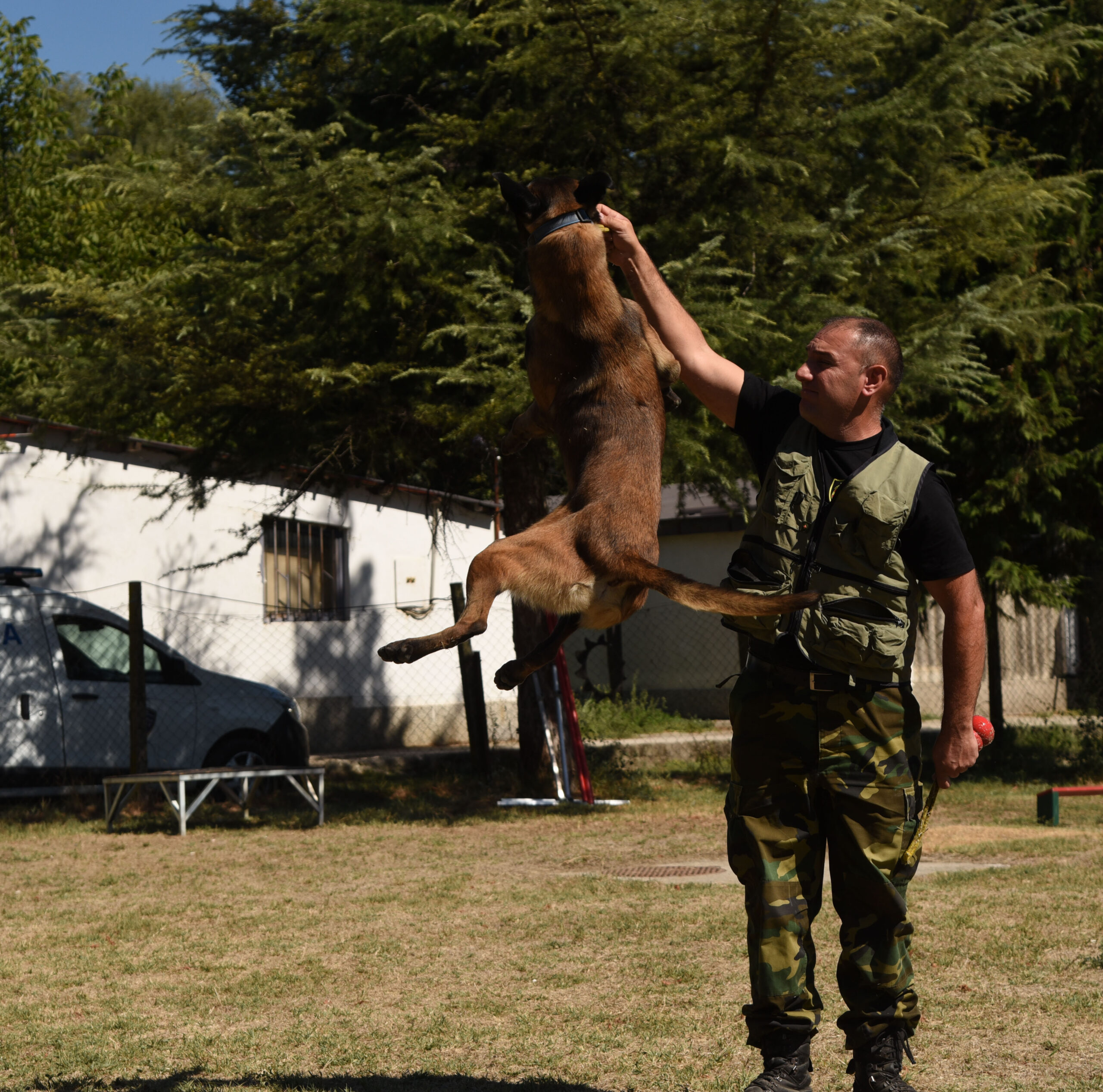 – Сите кучиња со кои работиме се издржливи, имаат посебен темперамент, интелект и брзина во извршувањето на задачите – вели Стојановски, кој ѝ е личен тренер на Фло, кучка од расата белгиски овчар. Во показната вежба што ја презентираше пред екипата на весникот Вечер, Фло успеа да скокне неколку метри, успешно извршувајќи ги наредбите од својот обучувач, за што на крајот беше слатко наградена.