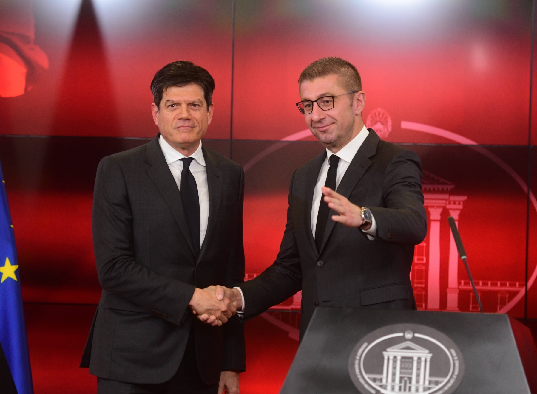 Владата останува 100 проценти усогласена со заедничката надворешна и безбедносна политика на Европската Унија, што претставува важна придобивка за карактерот на нашите меѓусебни односи и за нивото на нашата посветеност кон европските вредности. Како Влада остануваме целосно посветени на европскиот пат и на реформите кои ја прават државата посилна, пофункционална и поправедна. Ќе ги адресираме сите области каде е забележан застој со конкретни мерки и отчетност. Нашата цел е полноправно членство во рамки на ЕУ, порача премиерот Христијан Мицкоски на денешната заедничка прес-конференција со ЕУ амбасадорот Михалис Рокас, по примопредавањето на Извештајот за напредокот на земјава.