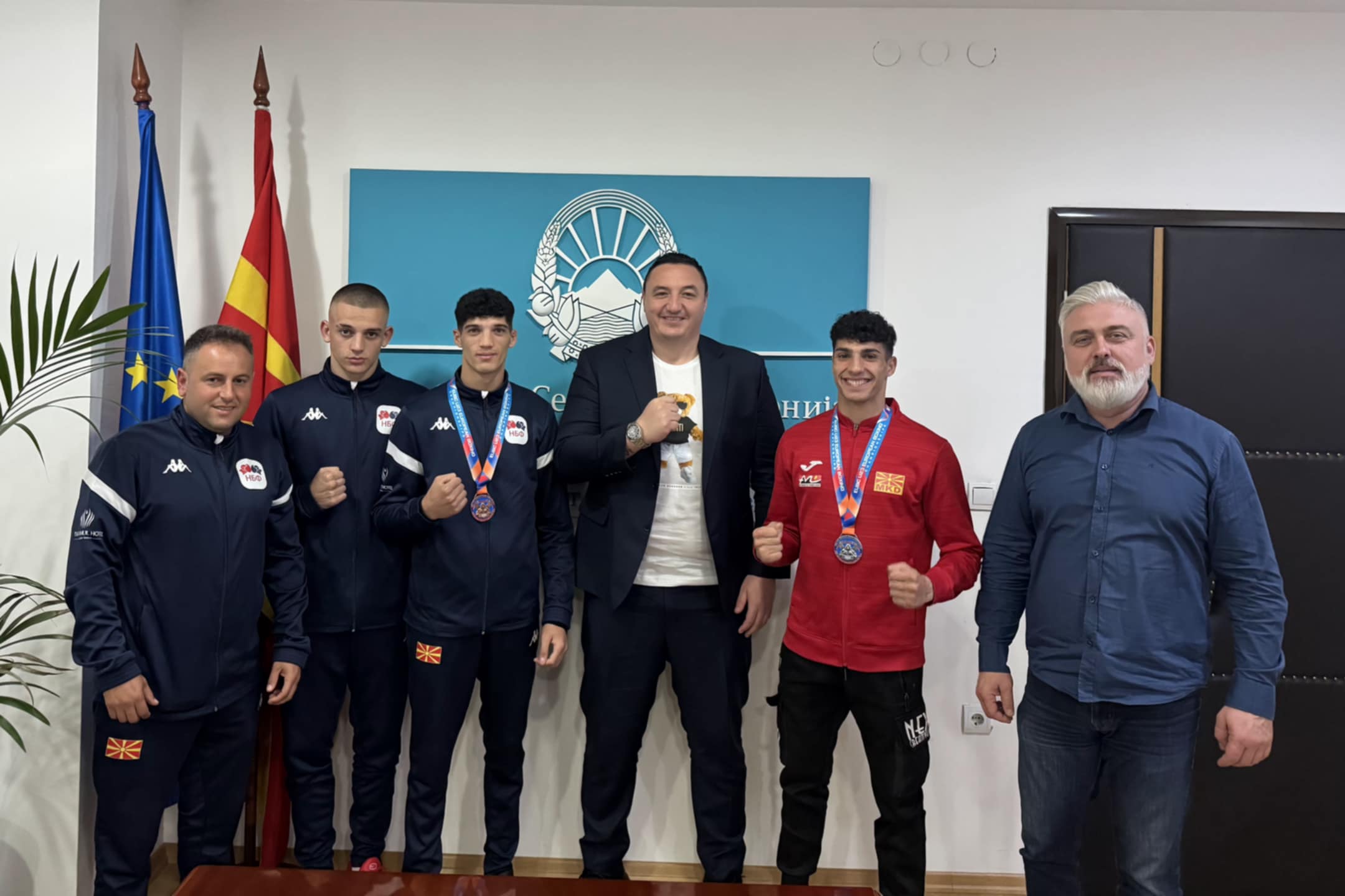 Министерот за спорт, Борко Ристовски, оствари средба со младите боксери Ален и Адриан Рустемовски и Јоаким Јовановски, тренерот Јове Петровски и со претседателот на Националната боксерска федерација, Кристијан Андреевски, по успешниот настап на македонските претставници и двата освоени медали на Европското првенство во бокс (У23) што се одржа во Ереван, Ерменија.