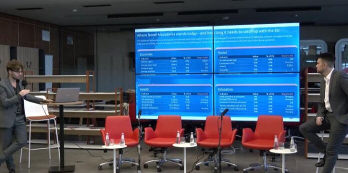 – Навидум звучи дека е песимистички овој број, односно многу долг, но постојат многу фактори што може да го забрзаат тој процес и тоа е пораката на која треба да се фокусираме како општество. Во рамките на истражувањето, направени се неколку сценарија, кои кажуваат дали ќе се намали овој период доколку имаме полноправно членство во Европската Унија, имаме пристап до пазарот, имаме пристап до фондови или имаме продолжена институционална поддршка. Сите сценарија, особено во клучните области: економија, социјални политики и дигитализација, ни даваат јасна слика дека ќе се поместат состојбите многу, дури дел од нив ќе се преполоват, доколку имаме полноправно членство или пристап до европските фондови – вели Виктор Митевски, извршен директор на Здружението за истражување и анализи (ЗМАИ).