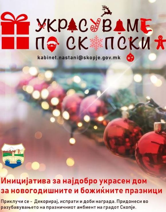 Град Скопје набргу ќе избере и ќе објави кој е најдобро украсен дом во главниот град. За изборот ќе одлучува формираната комисија и сопственикот на најдобро украсениот дом ќе добие парична награда.
