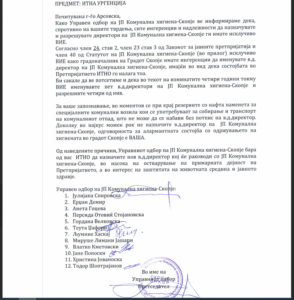 Во дописот, УО ја потсетува градоначалничката и дека „во текот на изминатите четири години токму таа именувала пет в.д.директори на ЈП Комунална хигиена-Скопје и разрешила четири од нив. Управниот бара од Арсовска да назначи вршител на должноста кој ќе раководи со претпријатието, со цел да се овозможи неговата примарна дејност и да се заштити животната средина и јавното здравје.