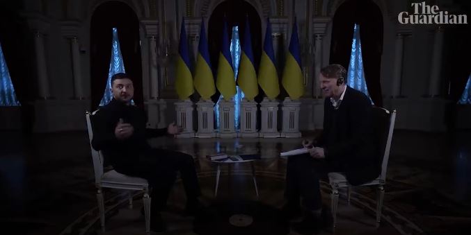 За време на интервјуто за британскиот весник „Гардијан“ во Маринскиот дворец во Киев, Володимир Зеленски, дојде до два прекини на електричната енергија.