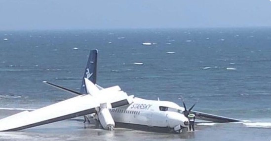 Патнички авион со 55 патници и членови на екипажот се лизна од пистата и заврши на брегот во вторник во Могадишу.