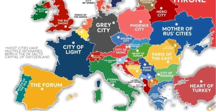 Кој прекар најмногу би им одговарал на европските метрополи? Одговорот го има вештачката интелигенција, со чија помош е изработена мапа на прекарите на главните градови на државите во Европа, која е објавена на инстаграм-профилот „Форуммапинг“. Идејата на авторот е да ѝ додели на секоја метропола поетска или историска инспирација – краток термин кој, според алгоритмот, најдобро би ја опишал нејзината душа, идентитет и углед.